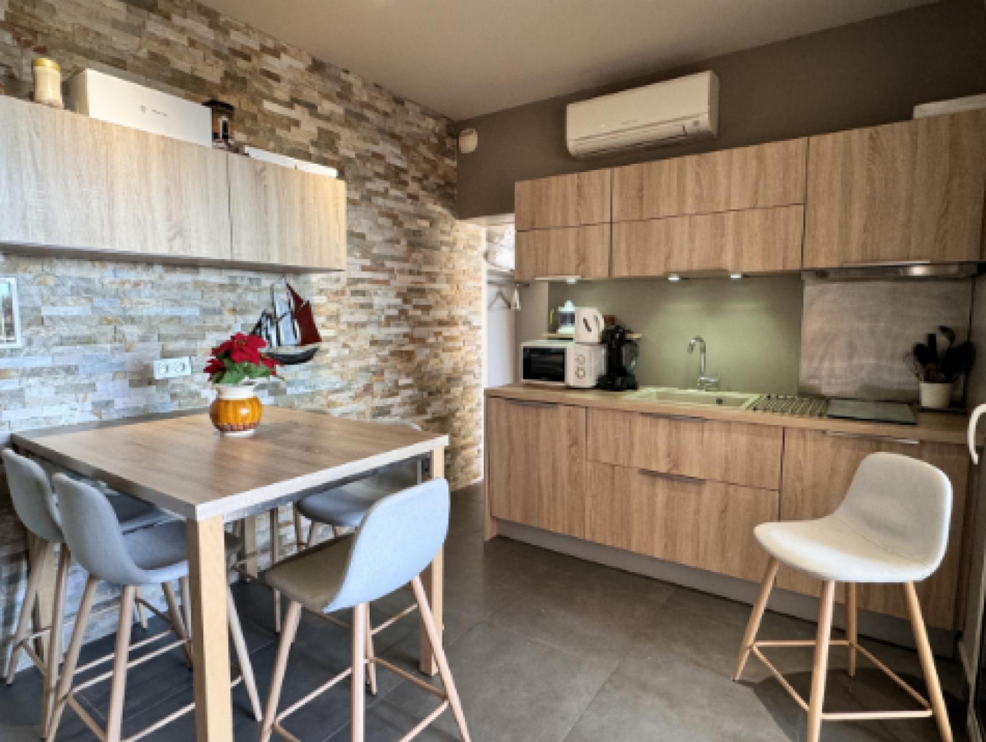 Cet appartement s'étend sur 66 m² et est classé 3 étoiles. Il se compose d'une cuisine américaine équipée, d'un séjour qui peut également servir de chambre d'appoint avec une porte à galandage, d'une chambre donnant sur la loggia et la terrasse ainsi que deux salles d'eau.