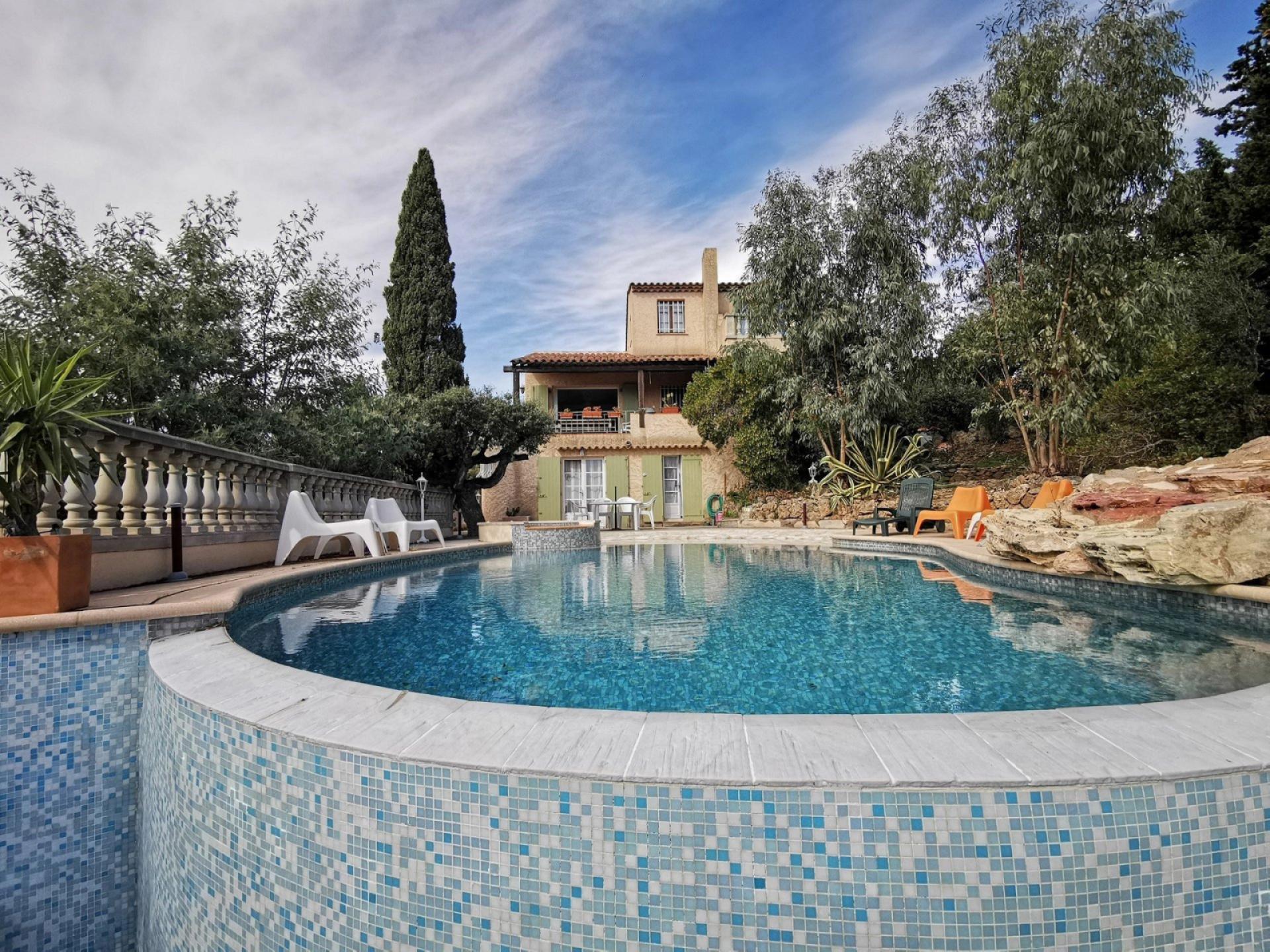 Sur un emplacement de choix, dominante, non loin des calanques, des plages de notre belle région, et proche des commodités !L'agence rêve de sud vous propose à la vente cette maison pleine de charme au style provençale. Hall d'entrée, buanderie, cuisine semi ouverte sur salon salle à manger sur terrasse couverte vue mer et barbecue une chambre de plain-pied avec salle de bain et wc séparé. à l'étage une chambre de maître avec salle de bain et dressing. en rez-de-jardin: Deux chambres avec salle de douche et dépendance (ancienne cuisine) l'espace peut être refait en appartement indépendant. Enfin, l'extérieur offre des espaces fleuris et arborés : Jacuzzi, Piscine à débordement, terrain de boules. Grand garage une voitures. N'hésitez pas à nous contacter pour des informations complémentaires !